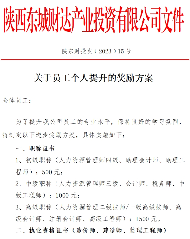 关于员工个人提升的奖励方案