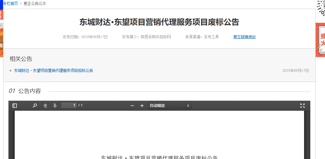 [下一篇] 013 东城财达·东望项目营销代理服务项目更正公告