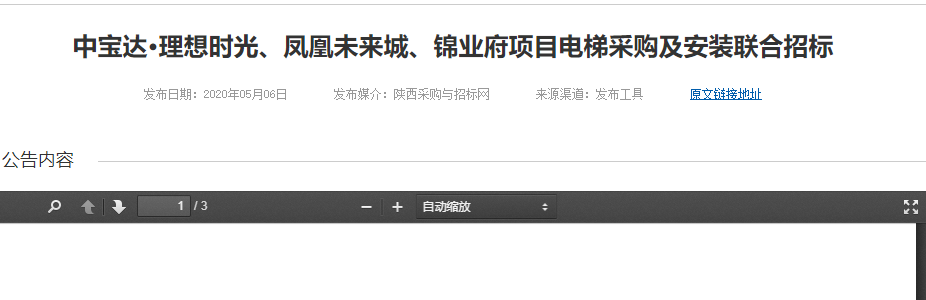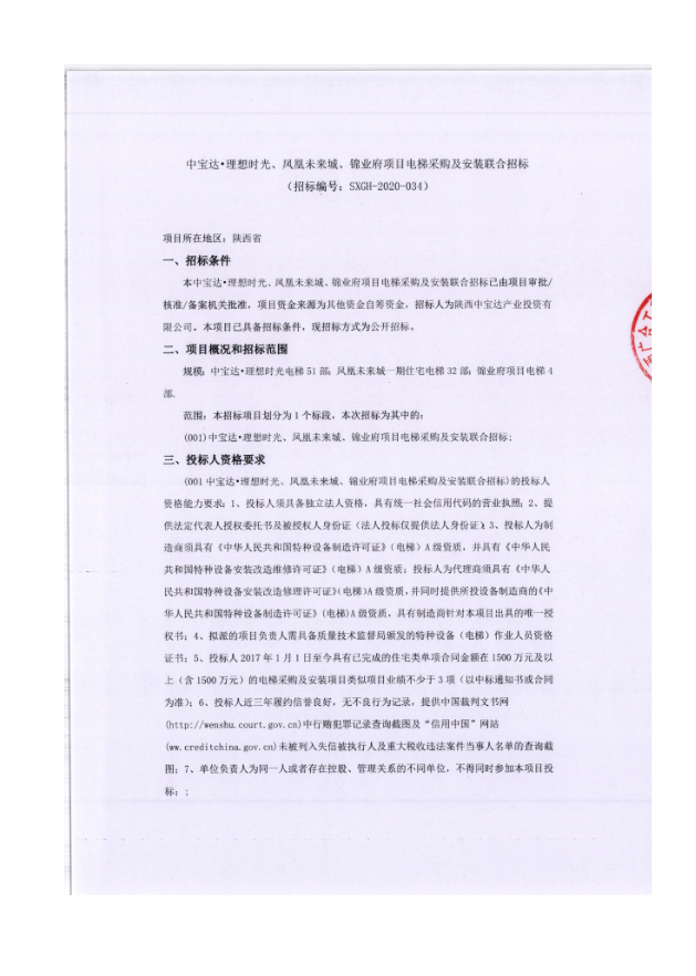 中宝达·理想时光、凤凰未来城、锦业府项目电梯采购及安装联合招标