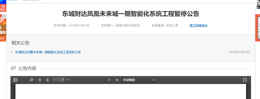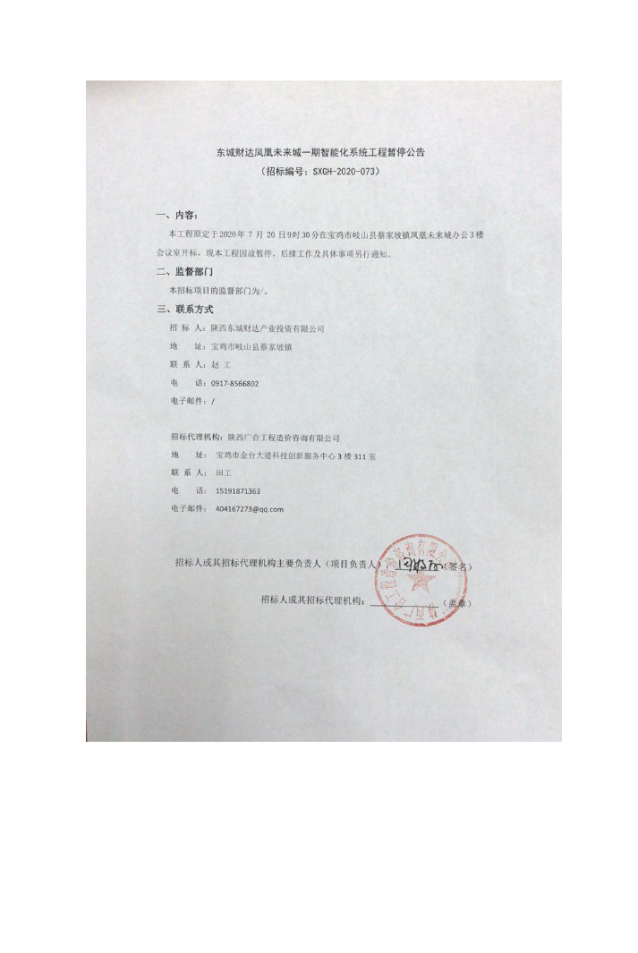 东城财达凤凰未来城一期智能化系统工程暂停公告