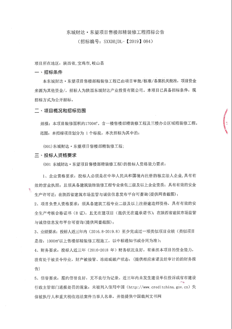 [下一篇] 东城财达·东望项目示范区景观工程废标公告
