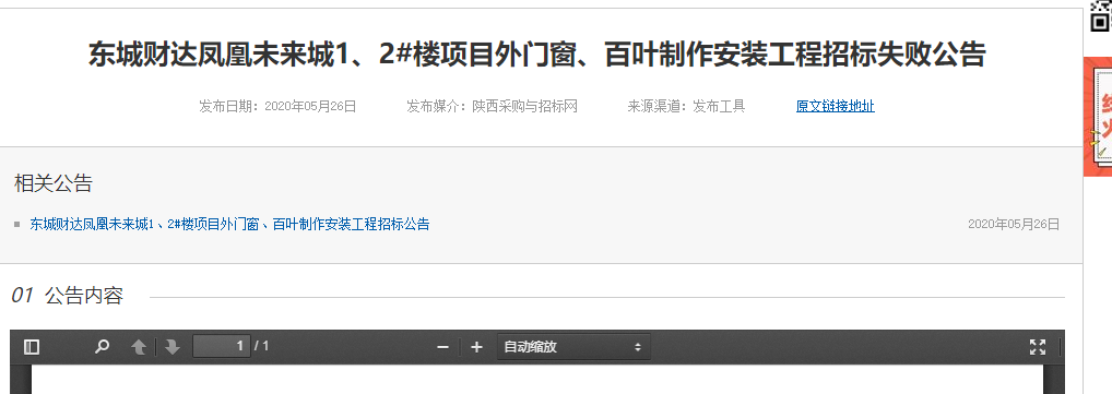 [下一篇] 东城财达凤凰未来城1、2#楼项目外门窗、百叶制作安装工程变更公告