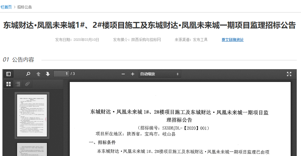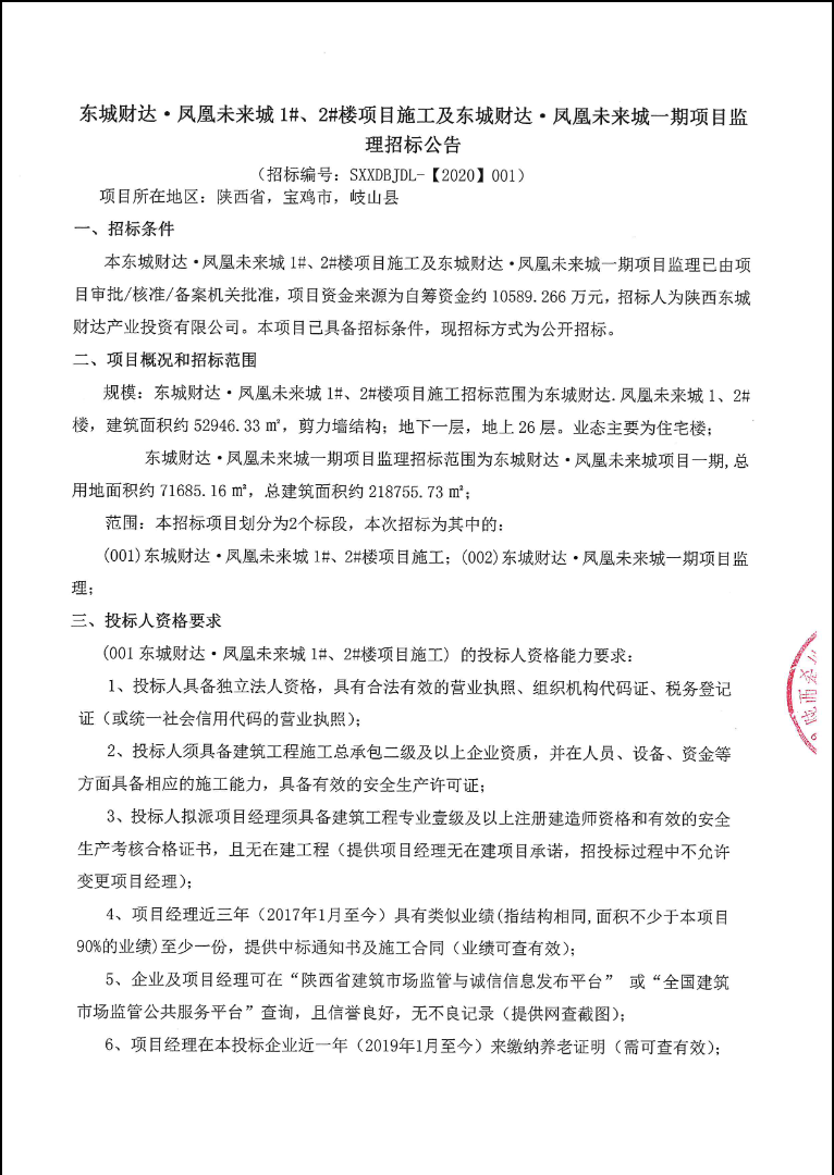 东城财达·凤凰未来城1#、2#楼项目施工及东城财达·凤凰未来城一期项目监理招标公告