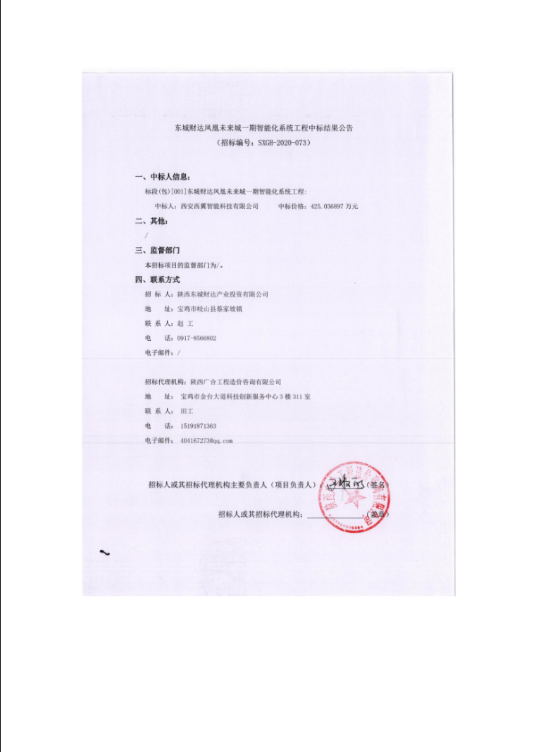 东城财达凤凰未来城一期智能化系统工程中标结果公告