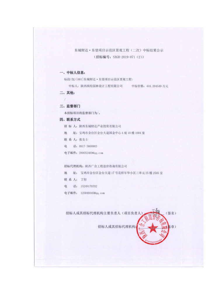东城财达·东望项目示范区景观工程施工中标公告