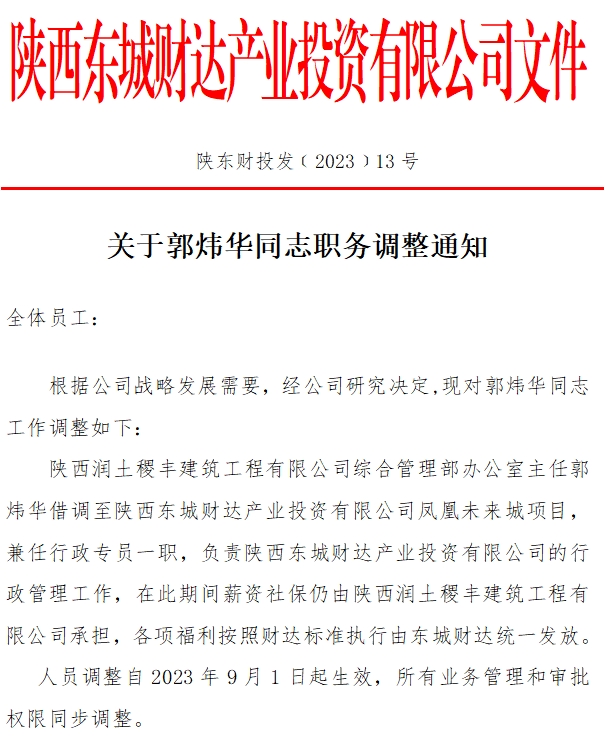 关于郭炜华同志职务调整通知