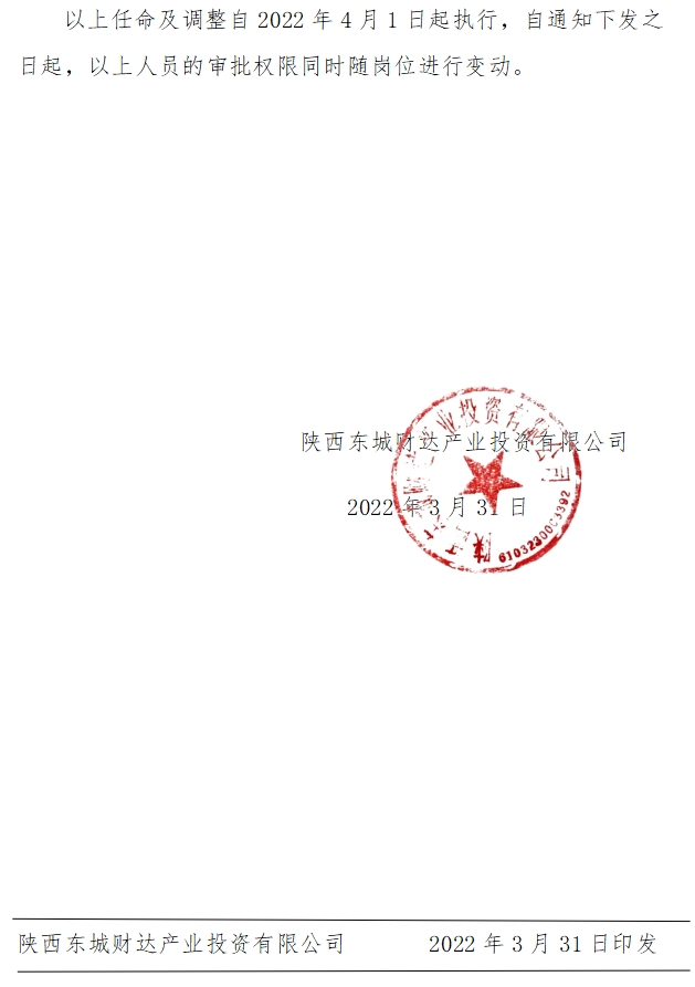 关于东城财达部分人员岗位编制调整的通知