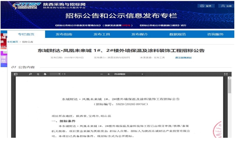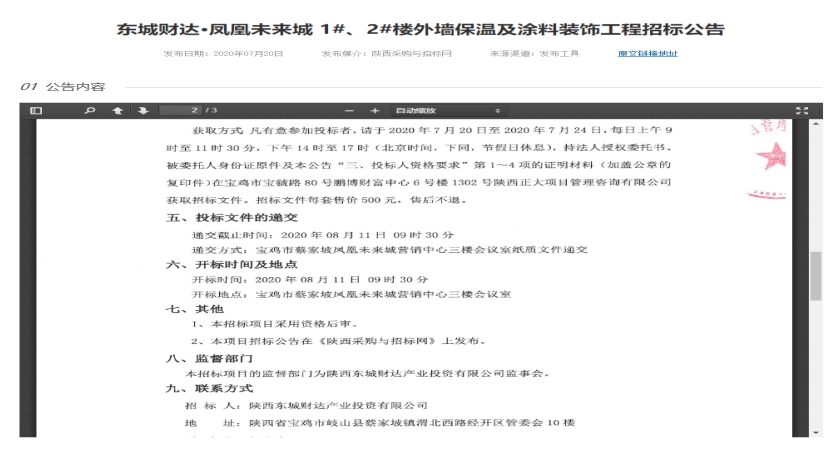 东城财达·凤凰未来城1#、2#楼外墙保温及涂料装饰工程招标公告