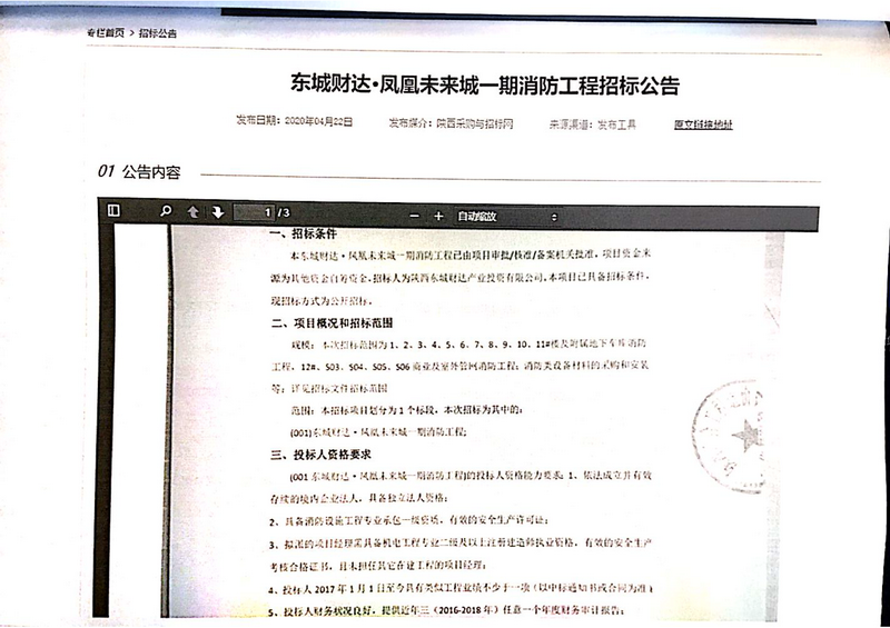 东城财达·凤凰未来城一期消防工程招标公告