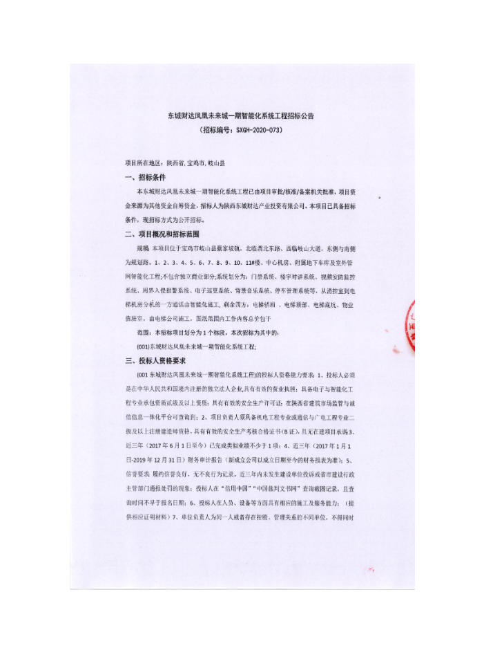 东城财达凤凰未来城一期智能化系统工程招标公告