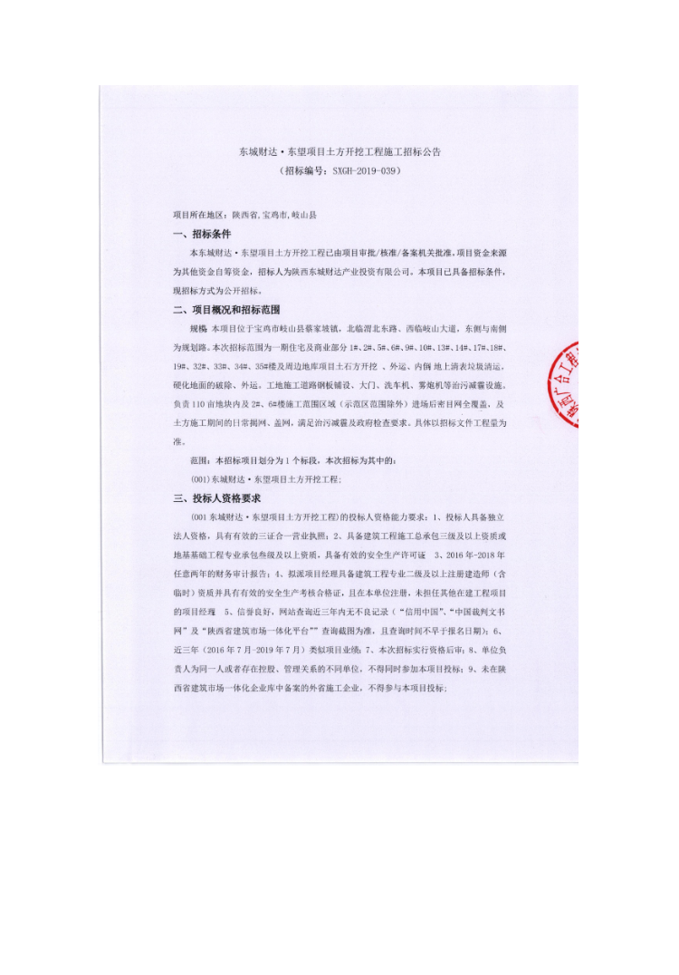 东城财达·东望项目土方开挖工程施工招标公告